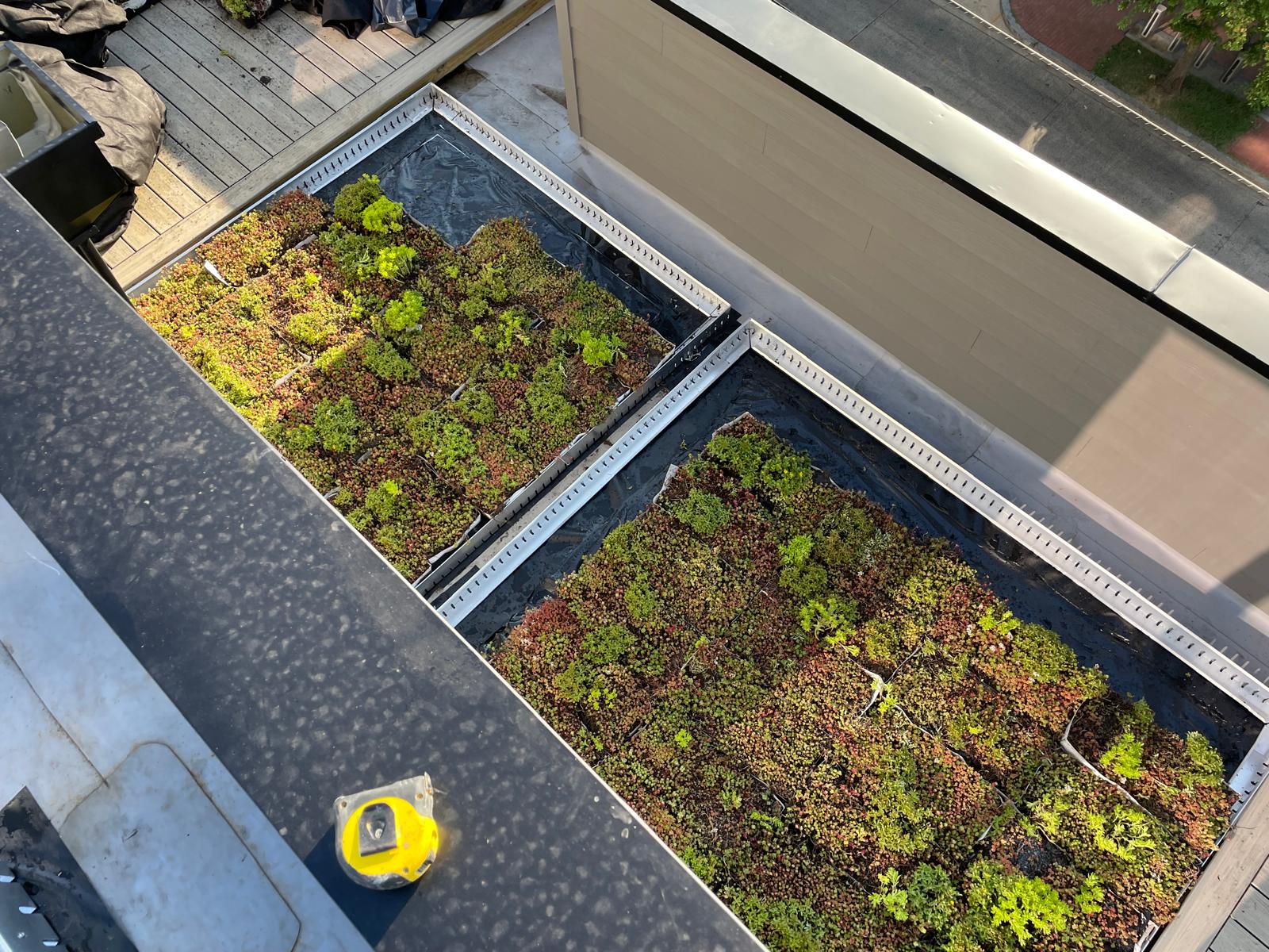 Sedum Cuttings or Pre-grown Mat over a drainage layer. |